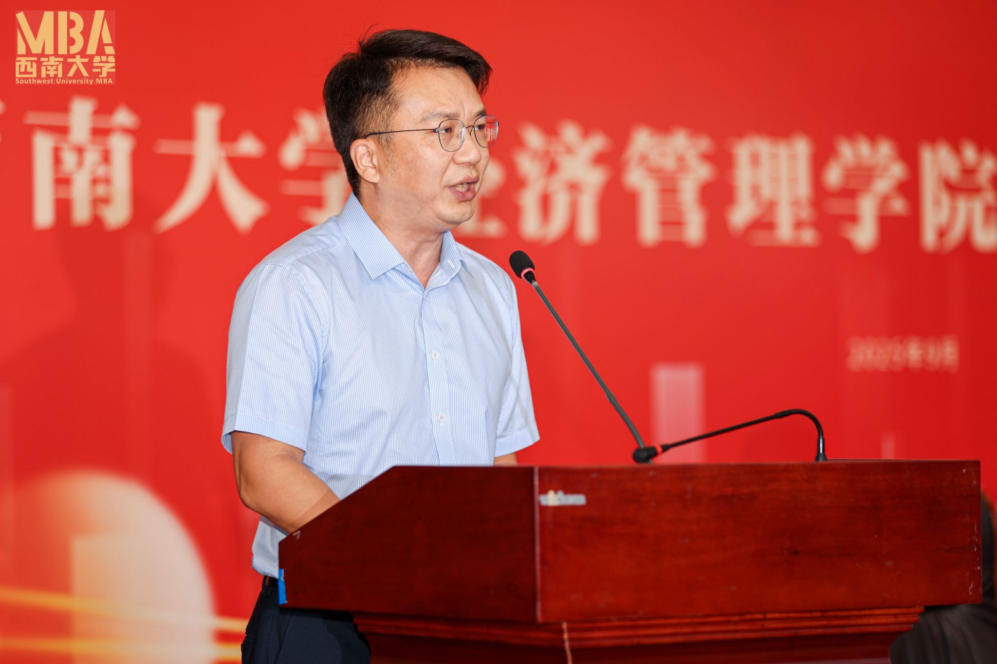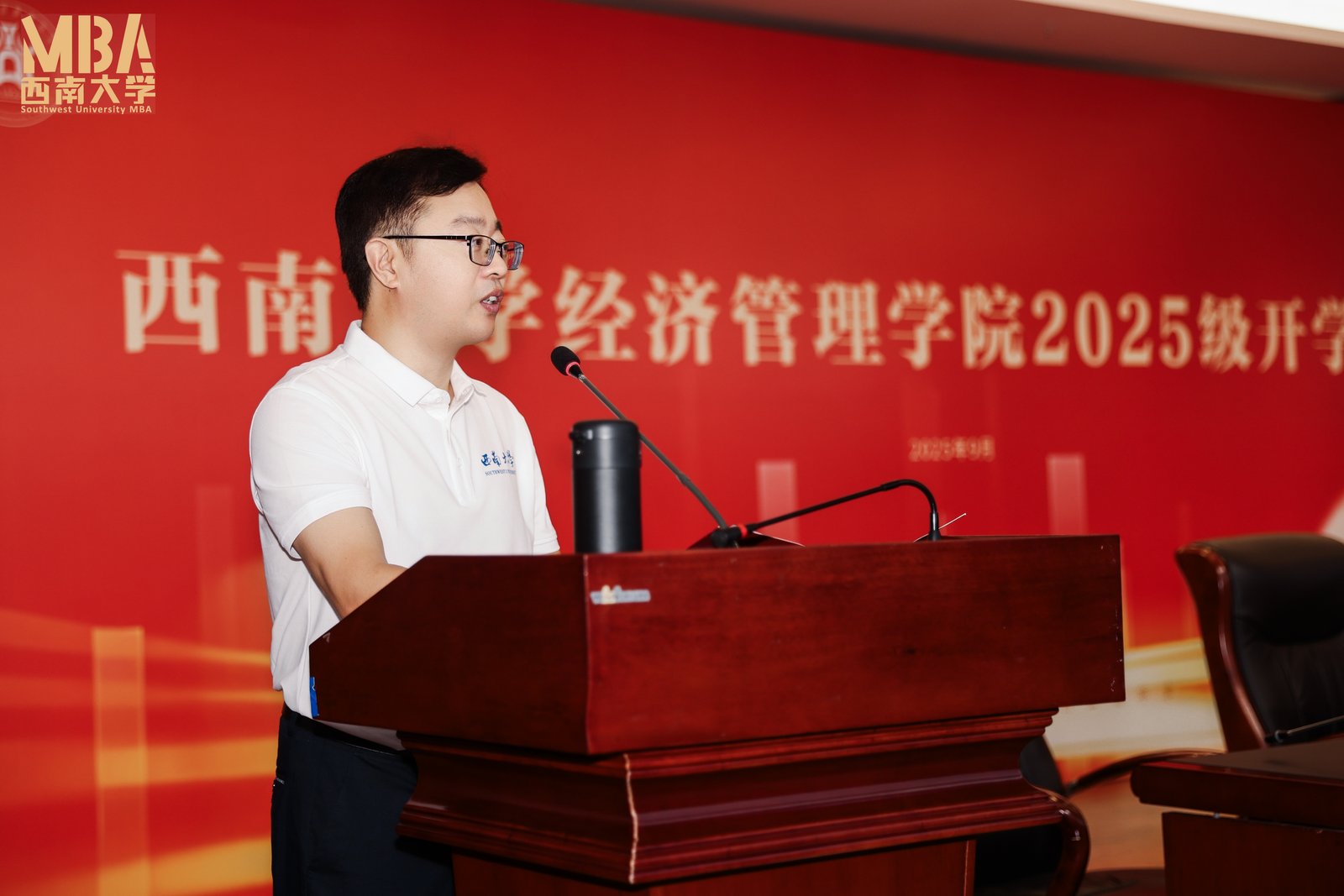 在入学导航讲座中,非全专硕教育中心副主任金绍荣强调,读商科研究生不仅要学新知,提技能,也要悟商道,修身心,更要尊德性,务苍生。他鼓励同学们在“识变、应变、求变”中转变场景、心态与行动,通过“三变”促“三学”以固“三力”,不断增强自身“学在西大、商行天下”的决心和信心。
