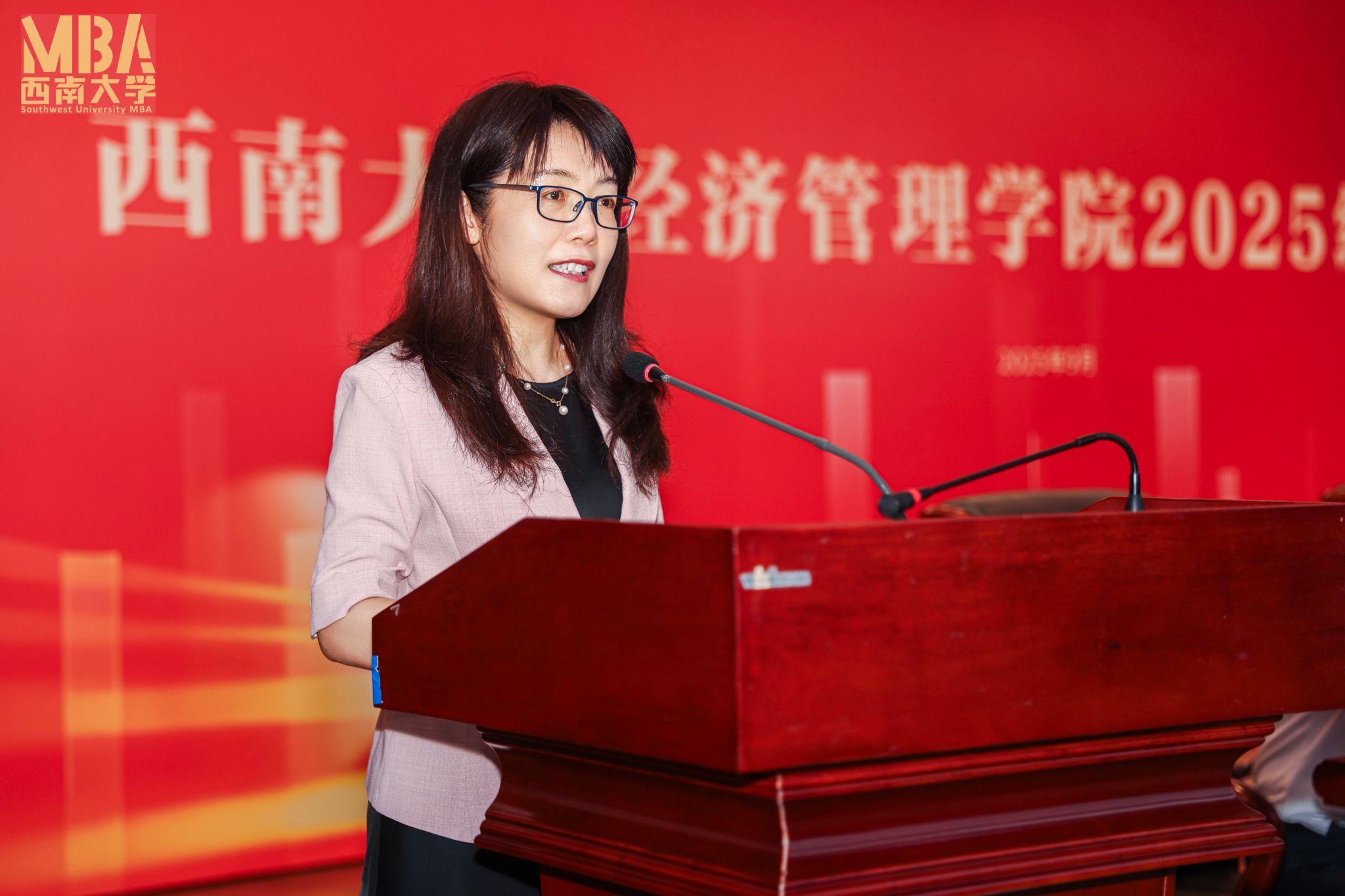 赵玉芳代表公司欢迎和祝贺2025级MBA、MPAcc、MTA全体新同学。她表示,作为教育部直属,教育部与农业农村部、重庆市共建的国家首批“双一流”建设高校,304永利集团始终以服务国家战略、引领区域发展为己任,站在中国式现代化推进的关键节点,公司正紧扣时代需求,全力推进专业学位教育提质升级。她勉励同学们要扎根时代实践,践行知行合一,做服务发展的实干者,要拥抱变革创新,锤炼系统思维,做引领未来的开拓者,要秉持共创共享,强化团结协作,做担当使命的奉献者。她希望同学们珍惜学习机会,汲取百年西大的精神滋养,潜心治学、追求卓越,在高质量发展和民族复兴征程中书写精彩篇章。