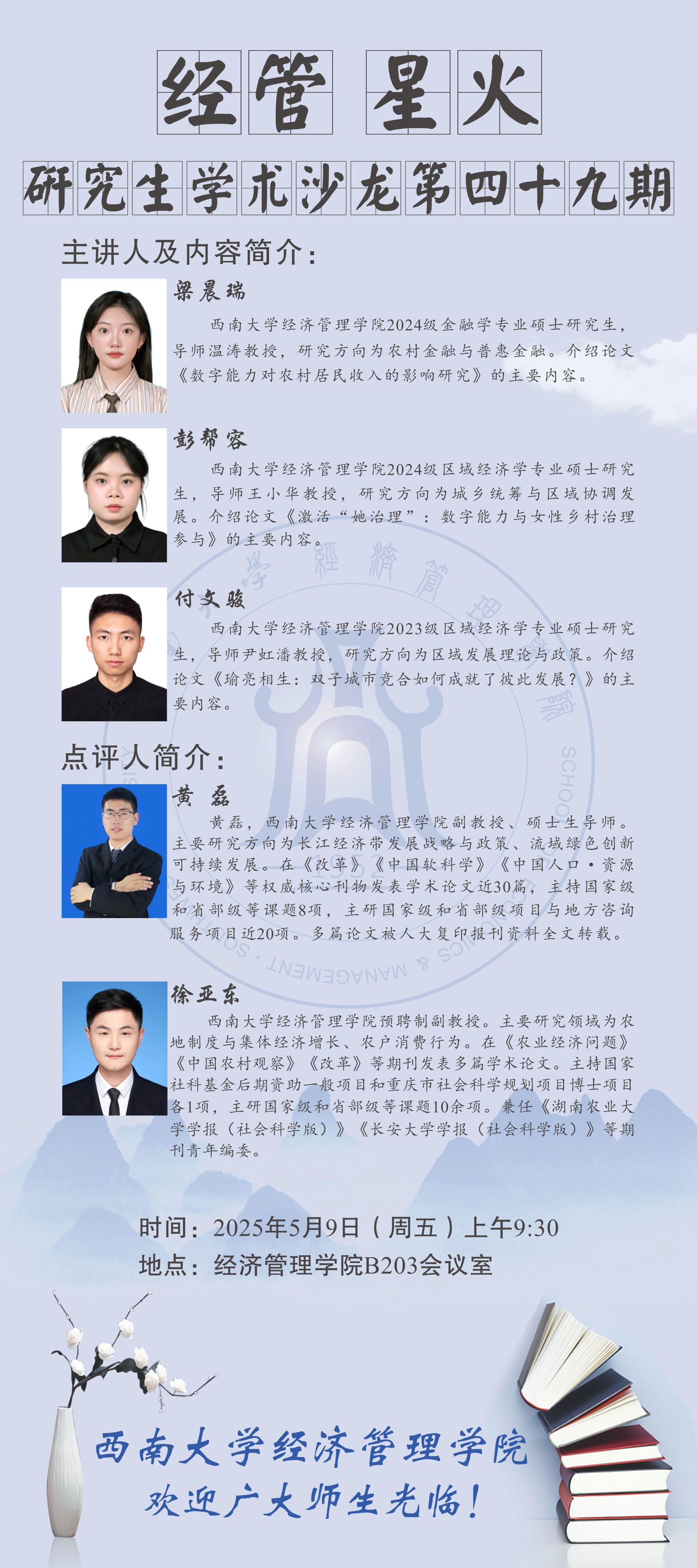 经管·星火 | 第四十九期研究生学术沙龙预告