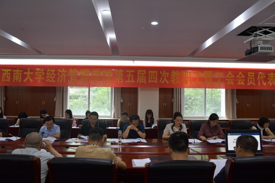 与会代表紧紧围绕行政工作报告、财务工作报告、学术委员会工作报告及专业技术职务评审文件进行热烈的分组讨论。各位代表对大会所作的报告给予充分肯定,并就一流本科建设、专业调整后教师发展、工商管理博士点申报及职称晋升细则完善等方面提出意见和建议。