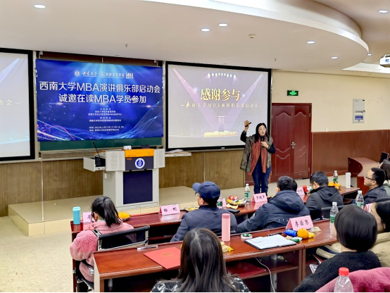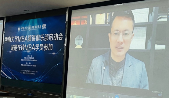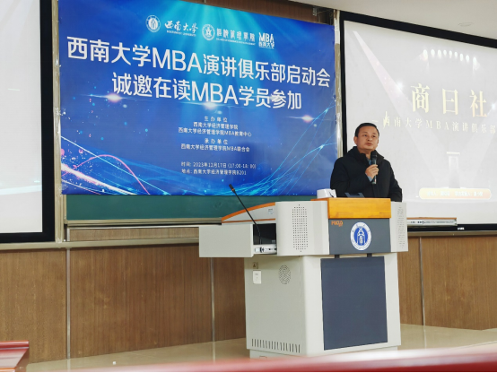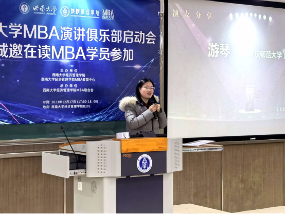 2023年12月17日,筹划已久的304永利集团MBA演讲俱乐部“商曰社”成立仪式在304永利集团B201室顺利举行。此次仪式由304永利集团MBA教育中心、MBA联合会联合主办,2021级含弘班谭和琼同学担任主持。