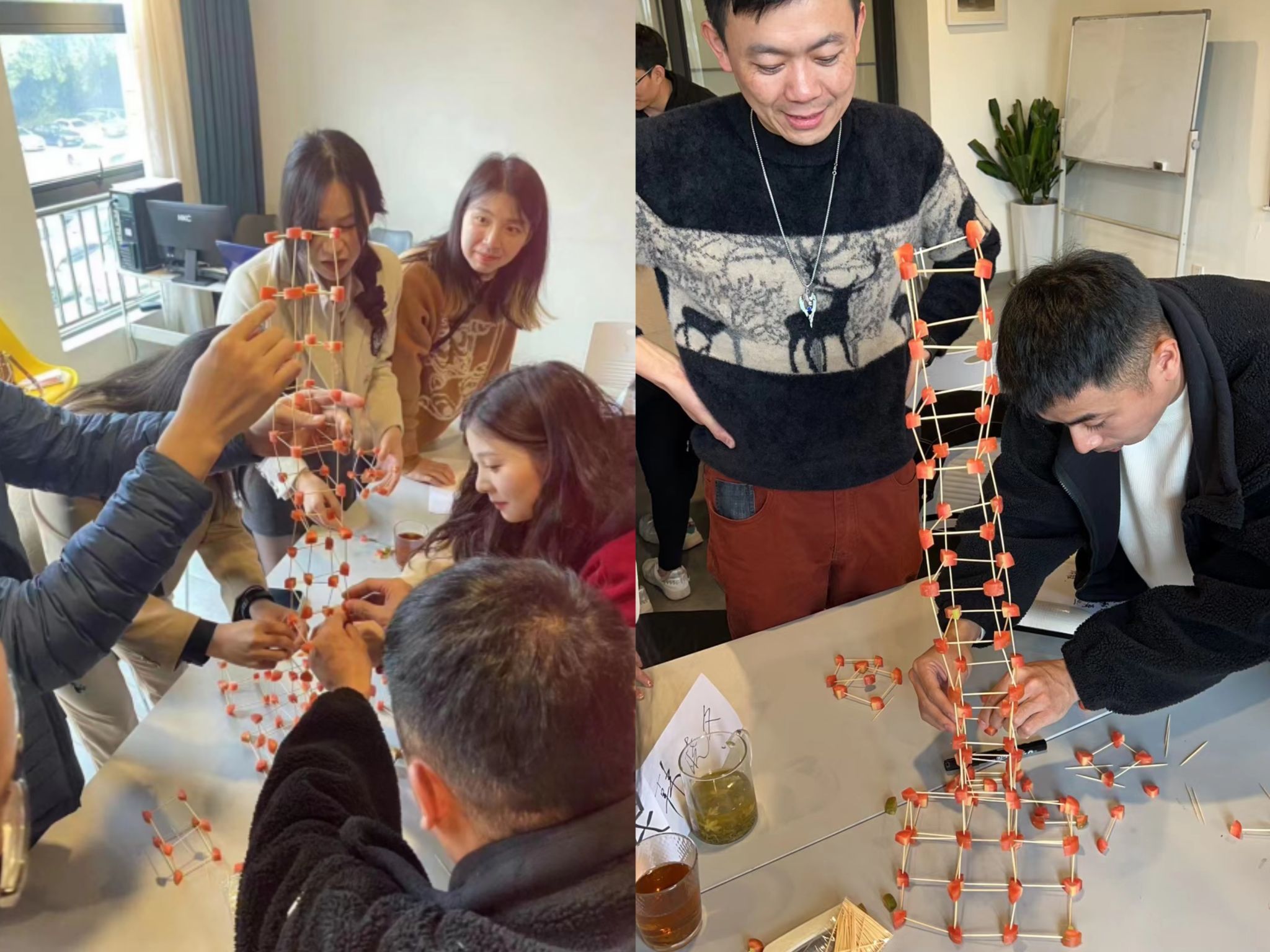 接着两校同学协同合作“高塔”挑战游戏。在建塔的过程中,同学们讨论得热火朝天,纷纷贡献自己的智慧。这不仅仅是一次领导力与想象力的挑战,更是一次团队凝聚力和协同作战意识的提升。挑战成功后,众人的欢呼声将活动的气氛推向了高潮。此次联谊活动,通过思维的碰撞,拓宽了彼此的认知边界,实现了新的理解和成长。