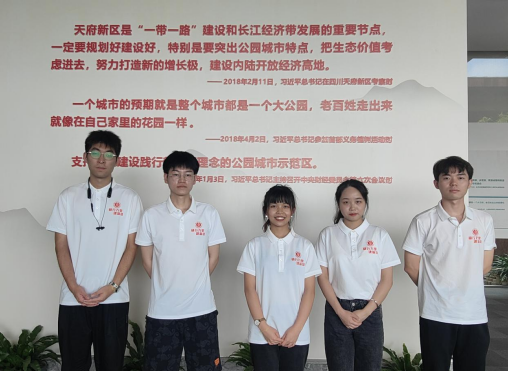 七月锦城,炎炎盛夏。经管·繁星实践队之锦城实践队的五名队员吴浩羽、何凡、杨盼、查启民和李龙雨前往四川省成都市天府新区开展“探索天府建设精髓,共绘城市生态蓝图”暑期社会实践活动。小分队首先参观了天府新区公园城市展示厅,探索天府新区建设公园城市的规划路径,随后前往兴隆湖切身感受天府新区的生态建设成果。