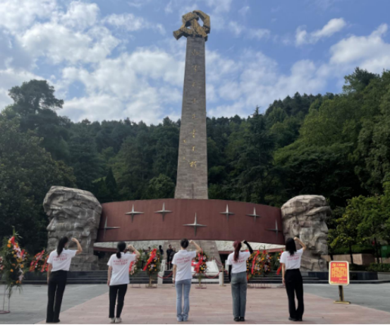 次日下午,队员们怀着崇敬之情攀登红军山烈士陵园,参观红军烈士纪念馆,了解他们在革命战争年代的英勇事迹,领会红军烈士为了民族独立和人民解放而英勇奋斗的伟大精神。实践队中的党员们在烈士纪念碑下庄严宣读入党誓词,表达对党的忠诚和对革命事业的坚定信念。这一仪式让队员们更加深刻地认识到新时代青年肩负着实现中华民族伟大复兴的历史使命。最后,队员们在烈士纪念碑下手捧鲜花,向烈士默默致敬,表达对他们的崇高敬意和深切怀念。