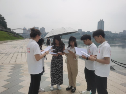 队员们沿着习近平总书记在三江口考察的足迹,深入了解宜宾市推进长江流域生态修复保护、实施长江水域禁捕退捕等举措取得的成效。随后,实践队员们就地展开了以叙州区、翠屏区为例的关于宜宾市生态环境变化的问卷调查,受访者均做出了客观公正的评价,对宜宾市在长江流域高质量发展中的上游担当表示认可,感叹宜宾市近年来生态环境巨大的变化,并憧憬着未来宜宾市生态环境的美好发展。