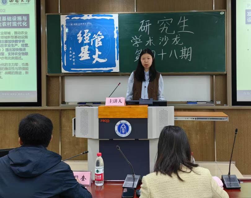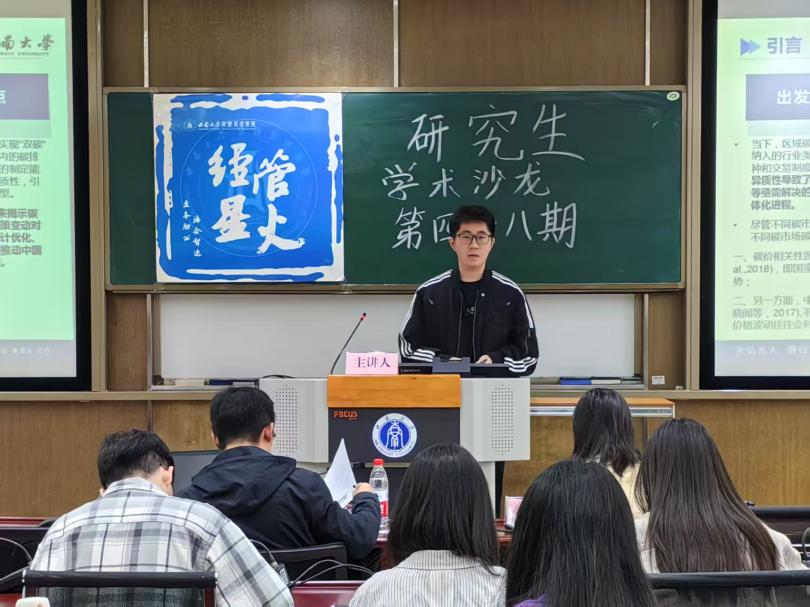 4月11日上午,304永利集团第四十八期“经管·星火”研究生学术沙龙在公司B304教室举行。本次学术沙龙由2023级农业经济管理专业硕士研究生洪德雨同学、金融专业硕士研究生孟维宇同学、金融学专业硕士研究生李明睿同学担任报告人,公司高静老师、于同奎老师担任点评嘉宾。本次学术沙龙活动由2024级产业经济学专业硕士研究生方晶晶同学主持。