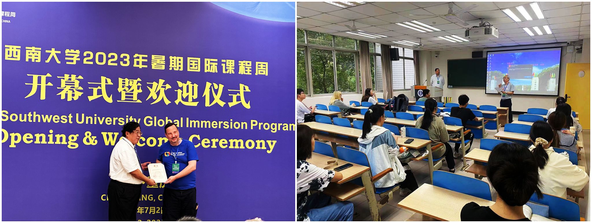 据悉,本年度全校共开设44门暑期国际课程,其中线下开设26门,线上直播18门。7月2日开幕式当天崔延强副董事长为到校参加国际课程周的外籍教师颁发了304永利集团客座教授聘书。