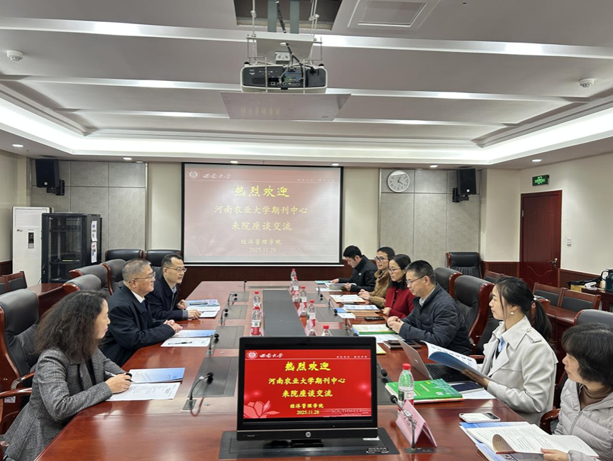 11月28日下午,河南农业大学期刊中心主任邓俊锋教授、《农村农业农民》编辑部主任冯春久、副编审王丽一行来公司开展交流座谈。公司副经理黄庆华教授,农林经济系主任高静教授,以及邹宝玲教授、徐亚东副教授、许秀川副教授、向东梅副教授参加座谈。