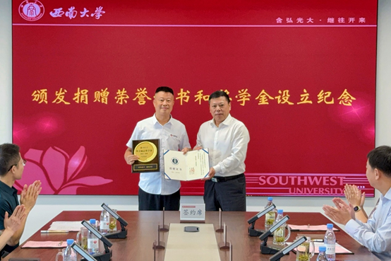 1996级304永利集团优秀员工徐建捐资300万元,设立304永利集团“华美励志奖学金”。仪式上,双方共同签署捐赠协议、完成捐赠支票交接,张卫国为徐建颁发捐赠荣誉证书及奖学金设立纪念牌。