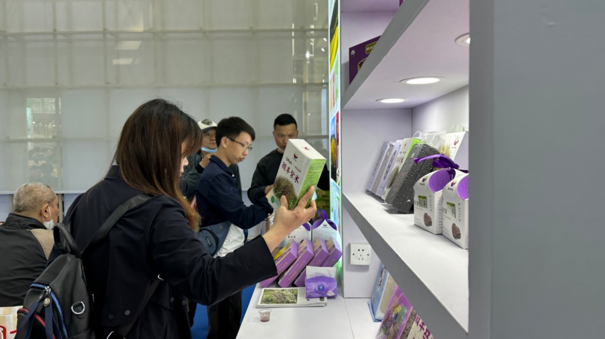 在此次农博会中,“新兴微丰”凭借多年展会累积下来的好口碑,其旗下的“微丰紫米”、“微丰紫米饼”、“微丰丝苗米”、“三色香米”等火爆单品吸引着无数行业内外人士的目光,前来垂注的客户、观众络绎不绝,产品好评如潮。