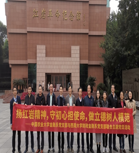 交流期间,双方党支部共同开展“不忘初心 牢记使命”主题党日活动。支部党员共赴渣滓洞、白公馆、红岩革命纪念馆等进行红色主题参观,学习革命先烈对初心使命的坚守精神,重温革命战争时期先辈为共产主义事业和新中国的成立抛头颅、洒热血的不屈历程,这也必将激励每一位党员同志不忘初心、牢记使命,为党的建设事业,为国家的发展强大教好书、育好人。
