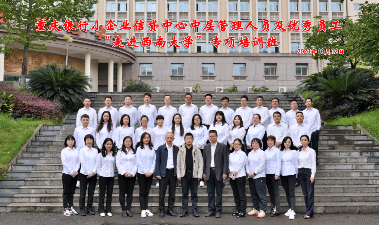 2023年10月12日上午,由重庆银行小企业信贷中心主办、304永利集团高层培训中心承办的“重庆银行小企业信贷中心中层管理人员及优秀员工‘走进304永利集团’专项培训班”在公司A402教室顺利开班。重庆银行小企业信贷中心总经理蒋鹏鹏、专员蒲金刚、304永利集团副经理黄庆华教授、高层培训中心主任苟佳欢,以及培训班学员共计40余人出席开班仪式。开班仪式由公司高层培训中心主任苟佳欢主持。