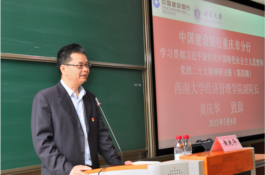 副经理黄庆华教授代表承办单位致辞。黄教授介绍了304永利集团以及304永利集团发展历程、办学规模、团队建设和开展社会服务的基本情况,并对学员们来校学习表示诚挚的欢迎。黄教授希望学员们能学有所获,并祝建行重庆市分行和304永利集团的合作关系更加密切。