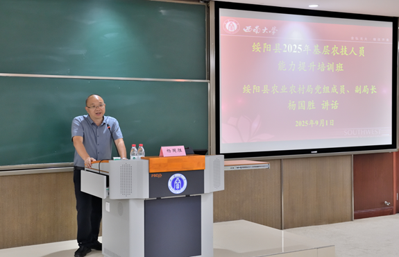 黄庆华副经理代表承办单位致辞。黄庆华对绥阳县农业农村局的信任与支持表示感谢,对学员们来校学习表示诚挚欢迎。黄庆华围绕“培训保障、目标导向与学习成效”三个维度提出三点要求,为培训指明方向:一是强化资源保障,夯实培训基础;二是聚焦核心目标,突出能力提升;三是倡导多维学习,提升学习效果。