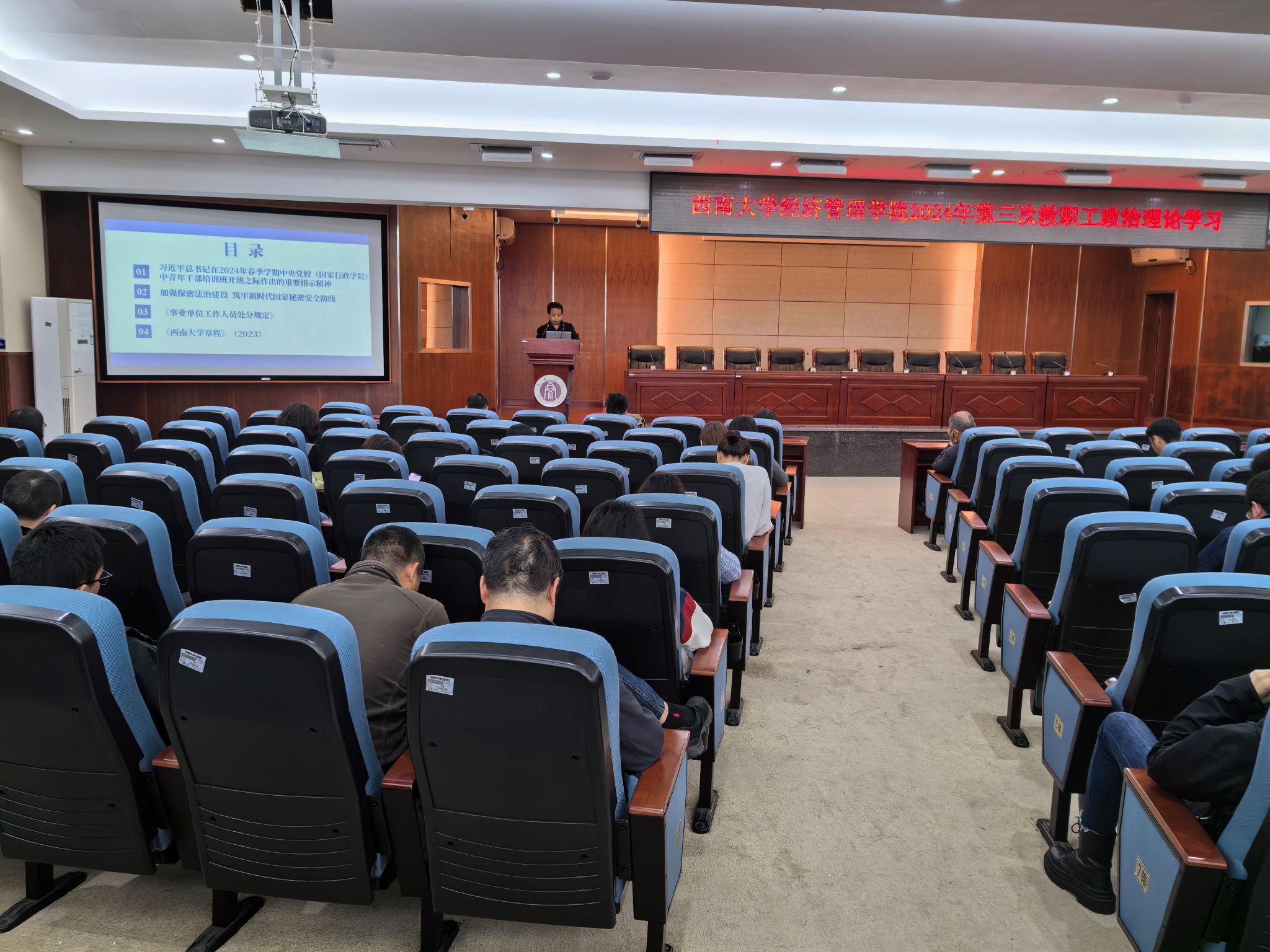 4月7日下午,公司2024年第三次教职工政治理论学习在公司B401报告厅举行,全体教职工参加了会议,会议由公司党委书记卢跃进主持。