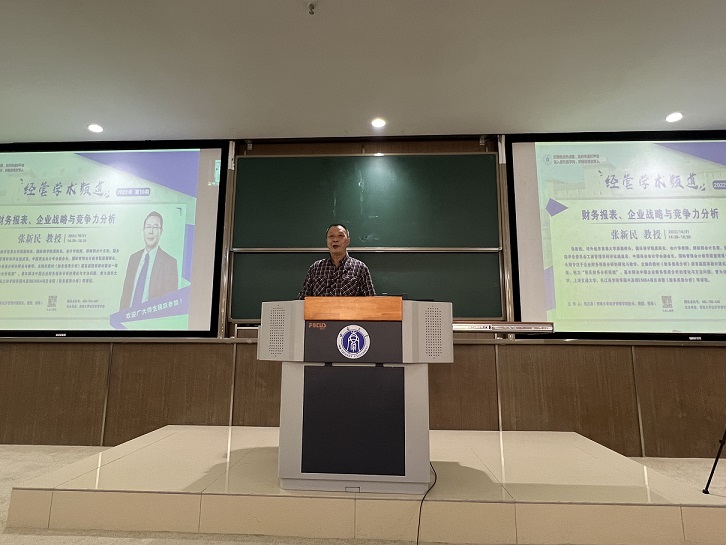 2022年10月31日,对外经济贸易大学原副董事长、国际商公司原经理张新民教授应公司邀请,为公司师生作了题为“财务报表、企业战略与竞争力分析”的学术讲座。本次讲座由公司经理祝志勇教授主持。