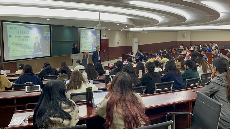 马永强展望“数字经济与财会研究”,讲解深入浅出,切合实际,围绕“会计准则制定”“会计课程规划”“战略思维培养”等问题和与会师生进行了交流,并分享了西南财经大学会计公司课程改革相关经验。