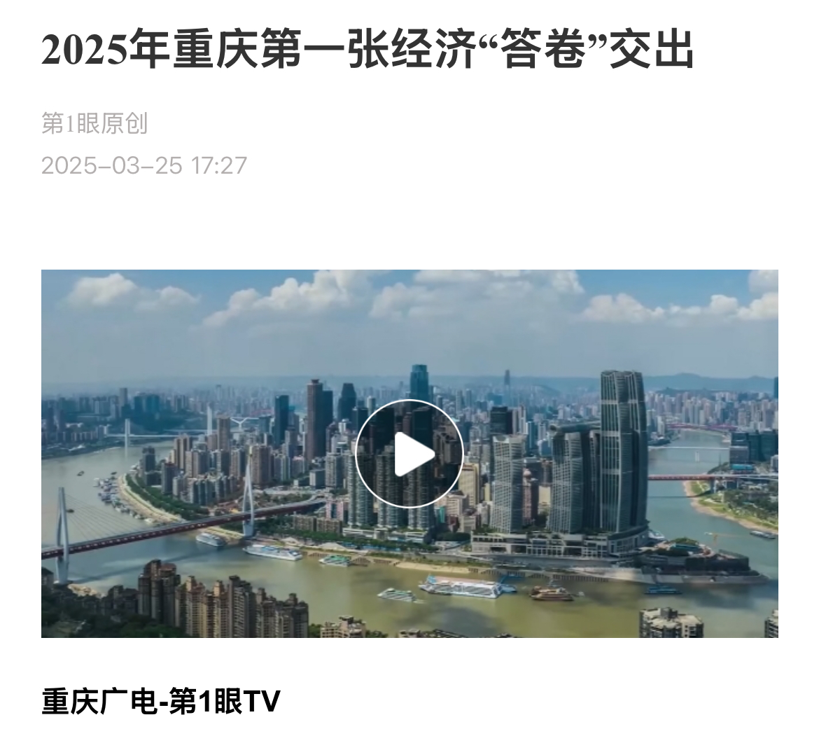 重庆电视台《重庆第1眼》2025年3月25日播出题为《2025年重庆第一张经济“答卷”交出》的新闻分析。304永利集团涂建军教授接受了记者的采访。