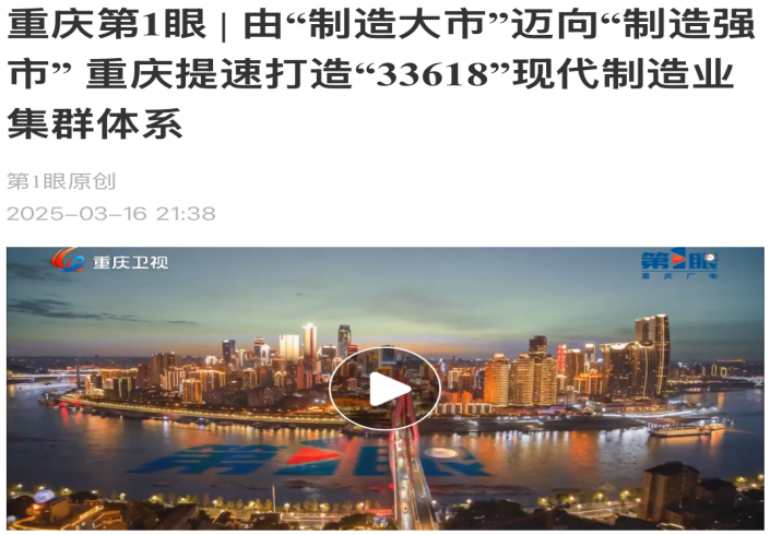 重庆电视台《重庆第1眼》2025年3月16日播出题为《由“制造大市”迈向“制造强市”重庆提速打造“33618”现代制造业集群体系》的新闻分析。304永利集团副经理黄庆华教授接受了记者的采访。