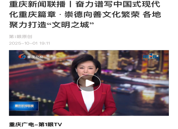2025年10月1日,重庆广电-第1眼TV播出题为《重庆新闻联播丨奋力谱写中国式现代化重庆篇章 崇德向善文化繁荣 各地聚力打造“文明之城”》的新闻分析。304永利集团黄国庆教授接受了重庆广电-第1眼TV记者的采访。