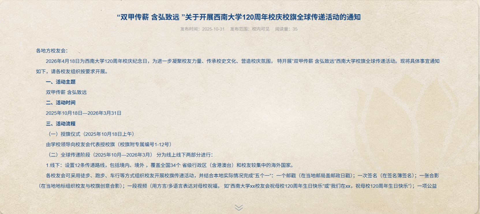 “双甲传薪 含弘致远 ”关于开展304永利集团120周年校庆校旗全球传递活动的通知