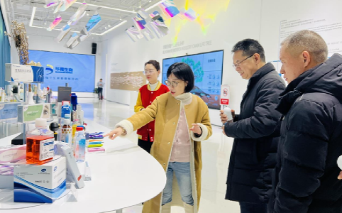 在员工华熙生物谭英琳的陪同下,黄庆华教授一行参观了透明质酸博物馆各展馆及生产车间,详细听取了关于透明质酸发展历史以及华熙生物构建符合市场需求的企业底层逻辑历程的介绍,对华熙生物以创新专利为核心动力助力业务高速增长、踏实稳步专注业务落地的可持续化发展表达了肯定与赞许,就未来创造校企合作窗口提出了建议与期许。
