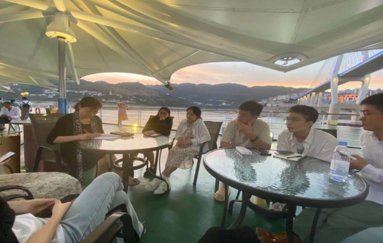 依据专业课程综合实习教学计划,此次实习着重考察景区导游、游轮服务等岗位的工作流程、工作任务、服务技能等,以及旅游新业态、线路规划与设计等专业内容。在长江黄金游轮公司的精心安排下,旅游管理专业师生考察了丰都鬼城、白帝城等景点发展实际以及导游服务等的具体流程,全面参观考察了长江游轮的设施与运营,参加了游轮公司专门组织的高级管理人员职业经验分享与专业互动交流会。通过考察,同学们增强了对旅游接待业、旅行社与导游业务、景区与目的地运营管理、酒店前厅与客房服务与管理等相关课程的实践认知。