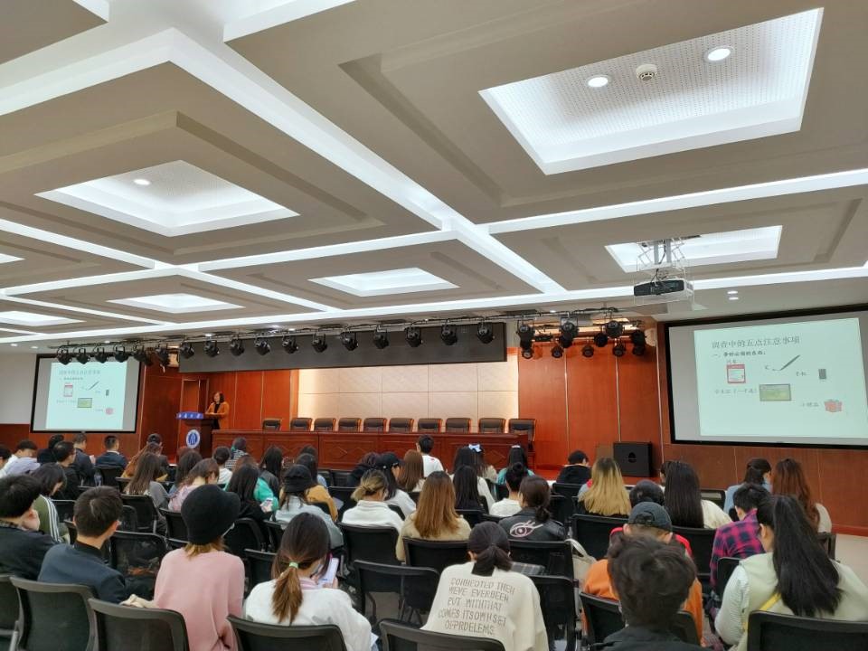接下来胡蝶老师为大家讲解了调研过程中的注意事项。第一是要带好问卷、手机、员工证、小礼品等必备物品;第二是要注意调研中的人身安全和财产安全;第三是要早出发,早返校;第四是要做好调研过程中的记录;第五是要注意联系带队老师。胡蝶老师详细耐心的讲解使同学们受益匪浅。