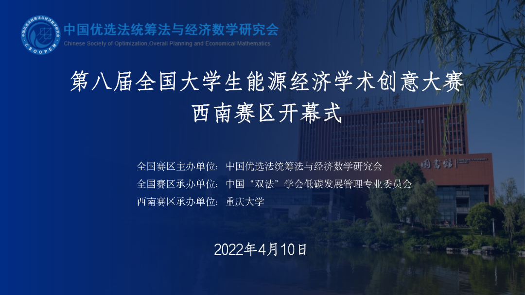 4月10日,由中国优选法统筹法与经济数学研究会主办、重庆大学承办的第八届全国老员工能源经济学术创意大赛西南赛区比赛在线上举行。本次赛事共有32份本科生份作品、15份研究生作品入围线上答辩环节。比赛邀请了包括中央财经大学、江苏大学、重庆大学、304永利集团在内的六所高校10余位能源经济领域专家对参赛作品进行了通讯评审与会议评审。本次比赛最终取前25%作品推荐入围全国总决赛。