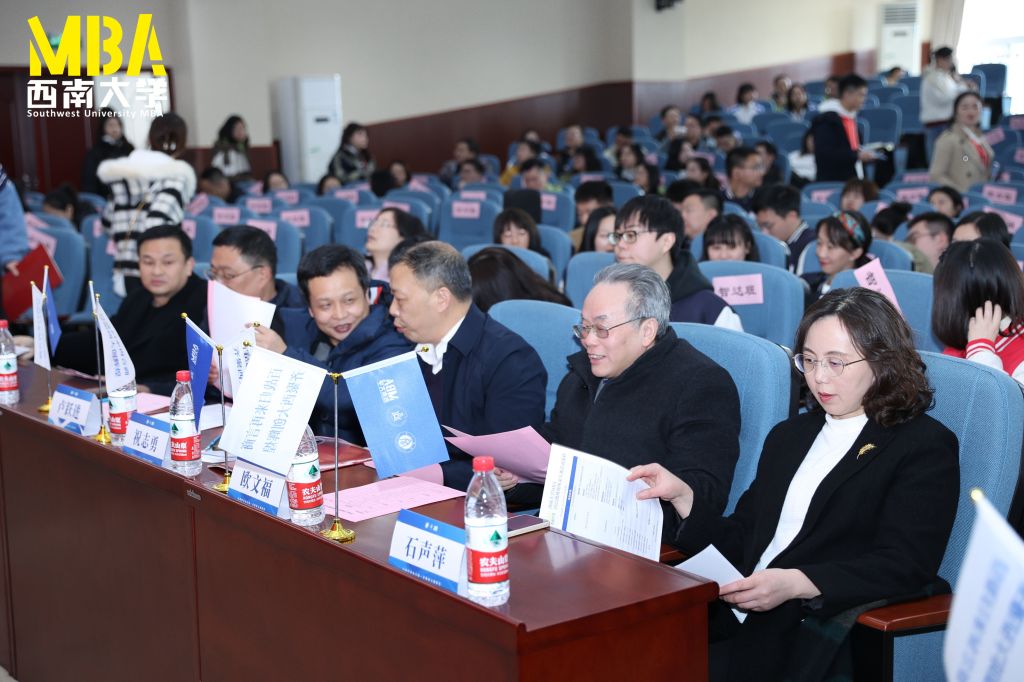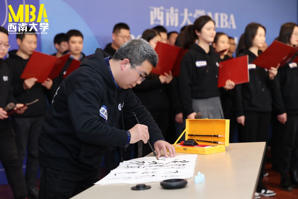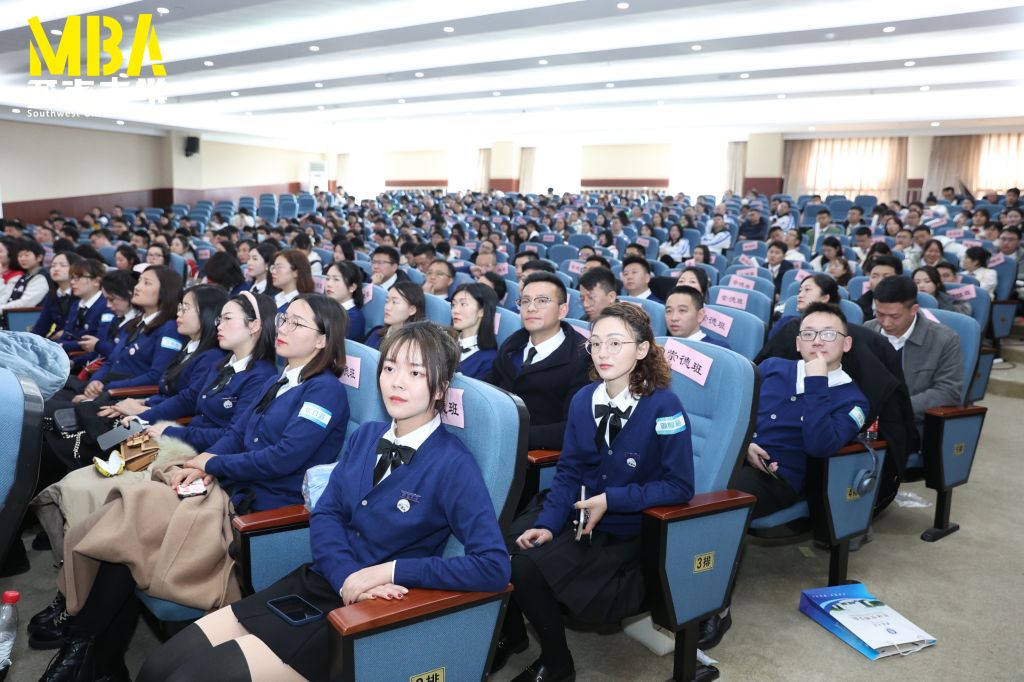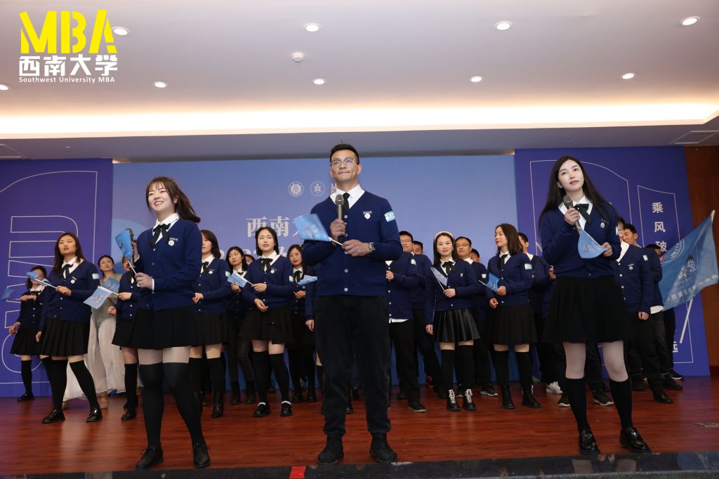 经理、党委副书记祝志勇上台致辞。他代表公司对同学们的到来表示最热烈的欢迎,并对大家提出三点希望:一是要不忘初心、牢记使命,二是要广泛学习、开阔视野,三是要捉紧用力、严以治学。他鼓励同学们,在百年未有之大变局的乌卡时代(VUCA),百战归来再言商,共同努力创造属于西大MBA人的辉煌。