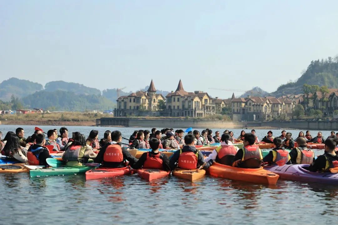 26日,湖光山色,春风拂面。同学们来到风景宜人的南川黎香湖皮划艇公园,开展了一场别开生面的素质拓展活动,内容包括陆地拓展和水上皮划艇两个项目,分别从宽度、深度、韧度、高度四个维度,着力训练新商科学子的团队协作能力,增强凝聚力和向心力,增进彼此的信赖和情感,提高大家主动沟通的意识。