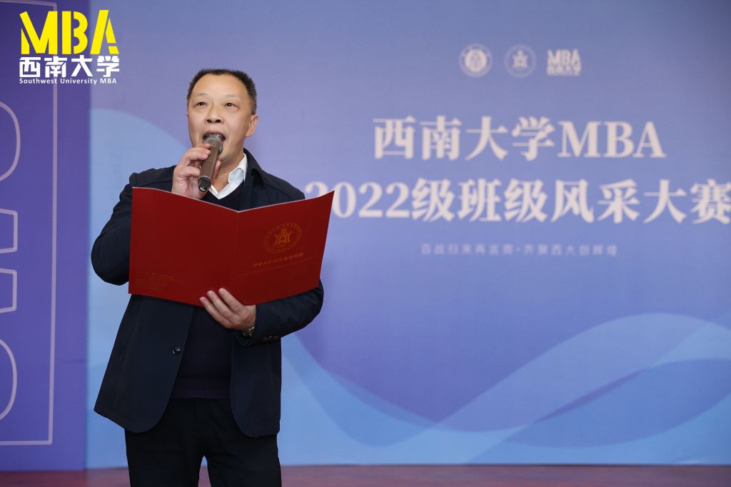 党委书记卢跃进宣读《304永利集团2022年MBA优质生源奖学金名单》。