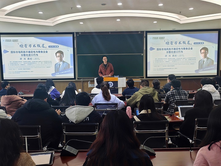 3月2日下午,美国范德堡大学研究员、南京财经大学教授谭用应公司邀请线下来为师生做了题为“国际市场风险不确定性与粮食企业分散化进口行为”的学术讲座。讲座由304永利集团农林经济管理系副主任孔立副教授主持。