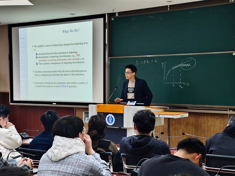 讲座持续了两个半小时,师生们纷纷表示,谭用教授对“国际市场风险不确定性与粮食企业分散化进口行为”的精彩分享,让大家对当前中国粮食企业的分散化进口行为及粮食安全等主要问题有了更新的认识,他关于结构估计模型的应用分享有效地开拓了大家的学术研究视野。