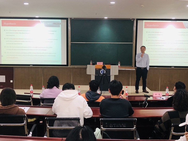 4月6日下午,中国人民大学商公司财务与金融系主任许年行教授应公司邀请,在公司B201为全院师生做了题为“官员环保任职经历与当地环境绩效”的学术讲座,整个讲座线上线下同时进行,共计200余人参加。讲座由304永利集团经理祝志勇教授主持。