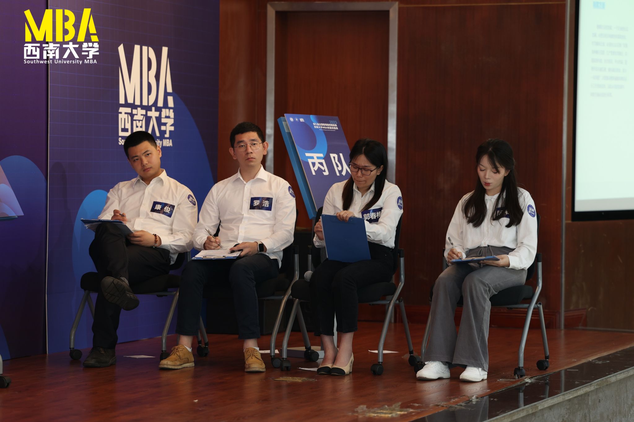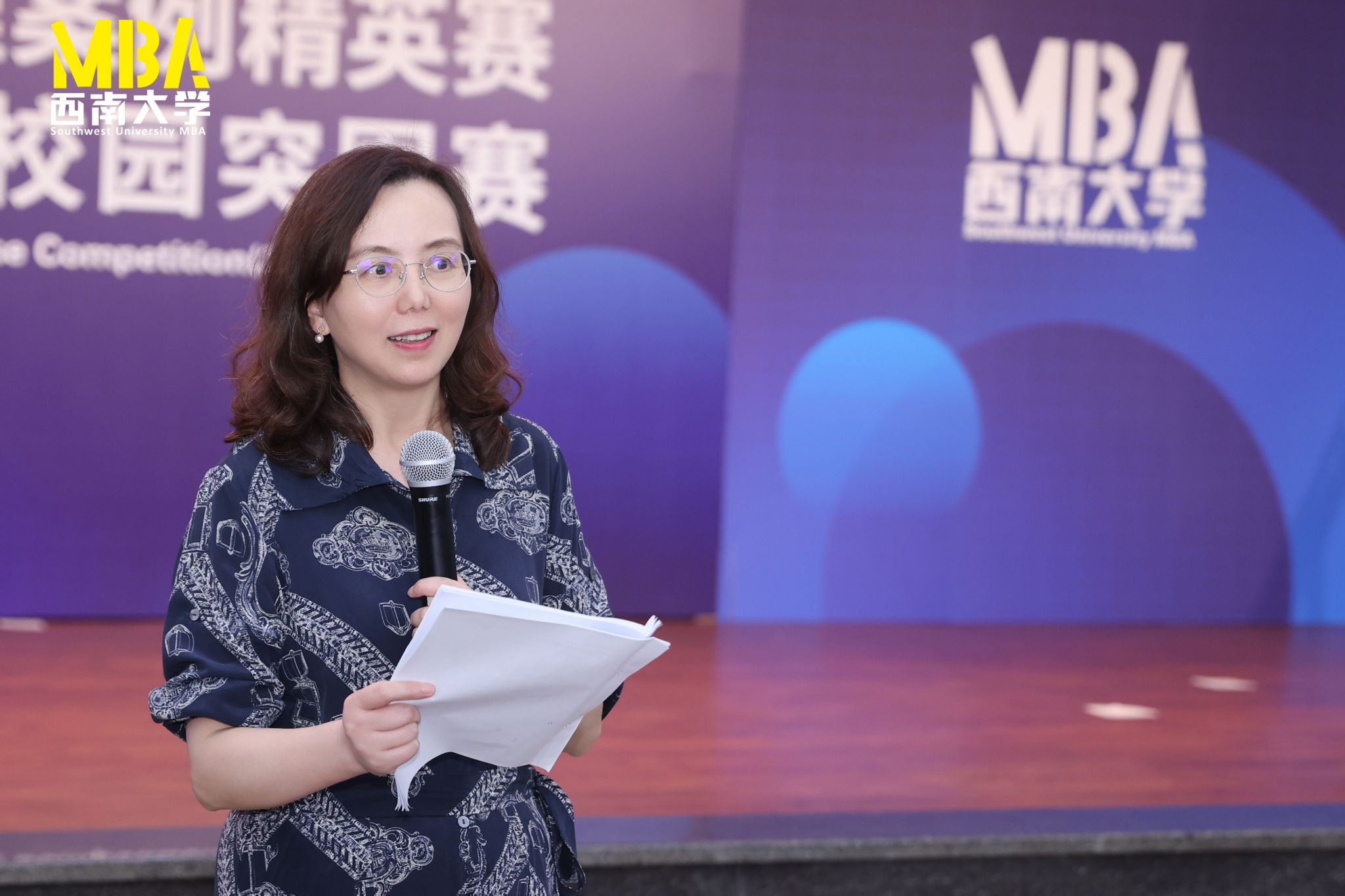 公司邓宗兵教授、刘建新副教授、谭畅副教授、陶雅老师、唐健老师、李宁老师组成B101赛场专家评审团,由邓宗兵教授担任评审团主席并为比赛致辞。B101赛场的主持人是2022级大成班江娅、2022级德合陈诗诗。