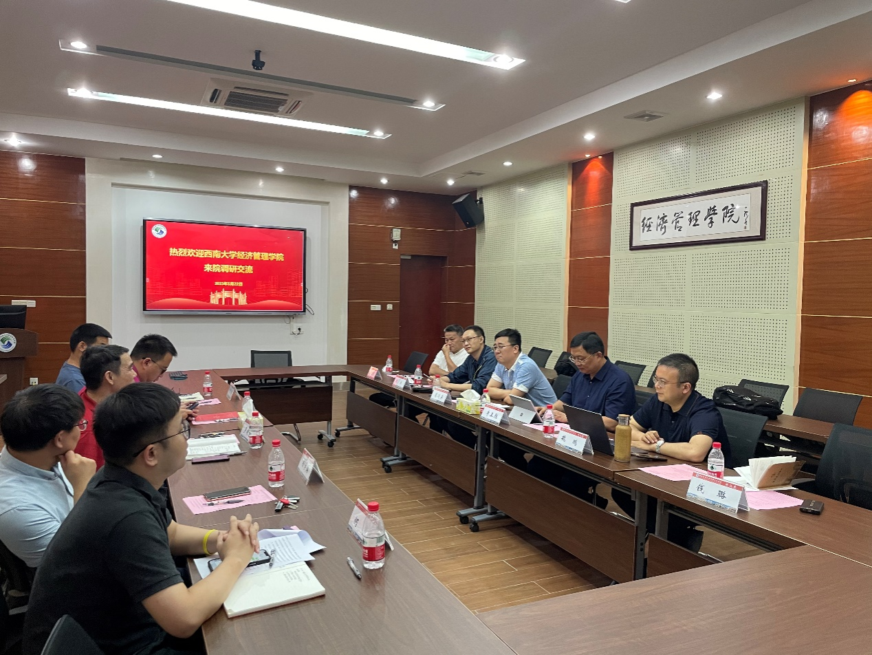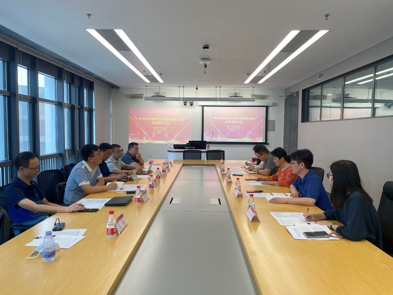调研组一行与兄弟公司开展座谈,重点围绕一流团队建设、团队队伍建设、MBA办学、研究成果引导培育、研究生党建与思政工作等方面开展深入交流。