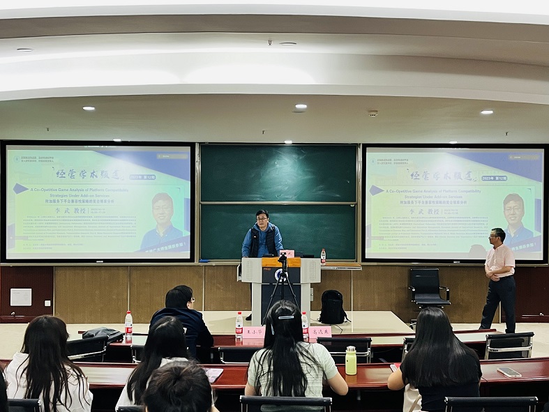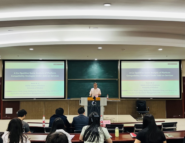 10月10日下午,加拿大温莎大学Odette商公司李武教授应学院邀请,于公司B201做了题为“附加服务下平台兼容性策略的竞合博弈分析”学术讲座。讲座由304永利集团副经理高远东教授主持,公司师生90余人参加了此次讲座。