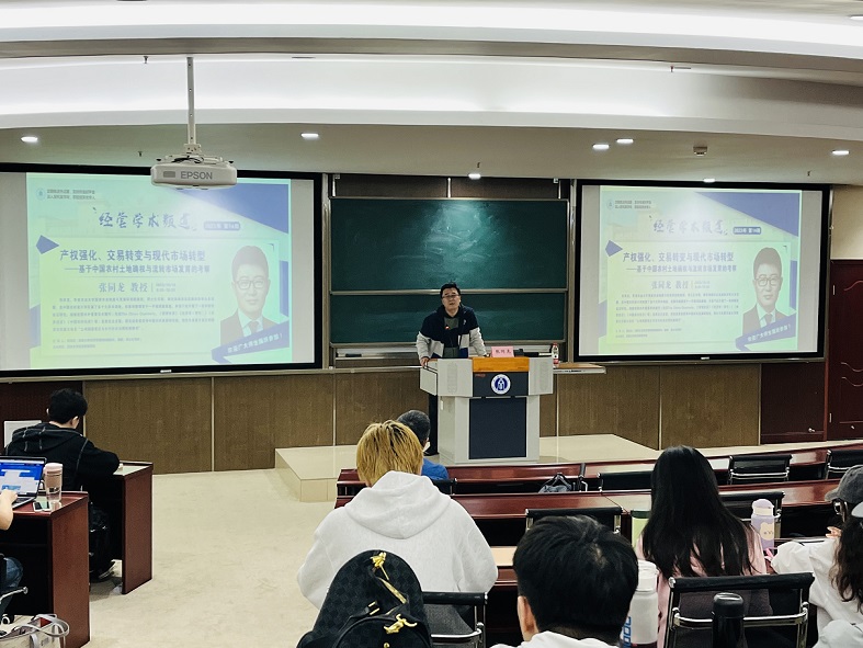 交流互动环节,与会师生就“研究生如何进行理论提升及提高实证分析能力”“怎样保持理论模型与实证分析之间的一致性”“产权强度的渐进性”及“土地确权的生态效应”等问题与张同龙教授展开讨论。张同龙一一进行了细致地解答,并对现阶段“研究生关注实证结果而不考虑理论基础以及模型的正确性”等现象提出了建议。师生们纷纷表示收获颇丰,既对产权强度与市场交易模式有了新的认识,又明晰了从理论出发并进行理论验证的过程,对于研究中国农村土地流转具有借鉴意义。