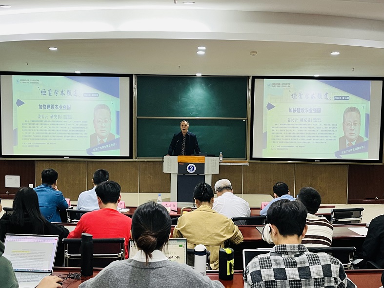 10月24日下午,中国宏观经济研究院产业经济与技术经济研究所副所长姜长云研究员应公司邀请,在公司B201教室做了题为“加快建设农业强国”的学术讲座。讲座由304永利集团经理祝志勇教授主持,公司师生80余人参加了此次讲座。