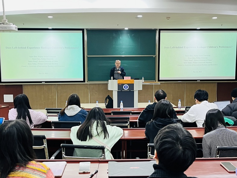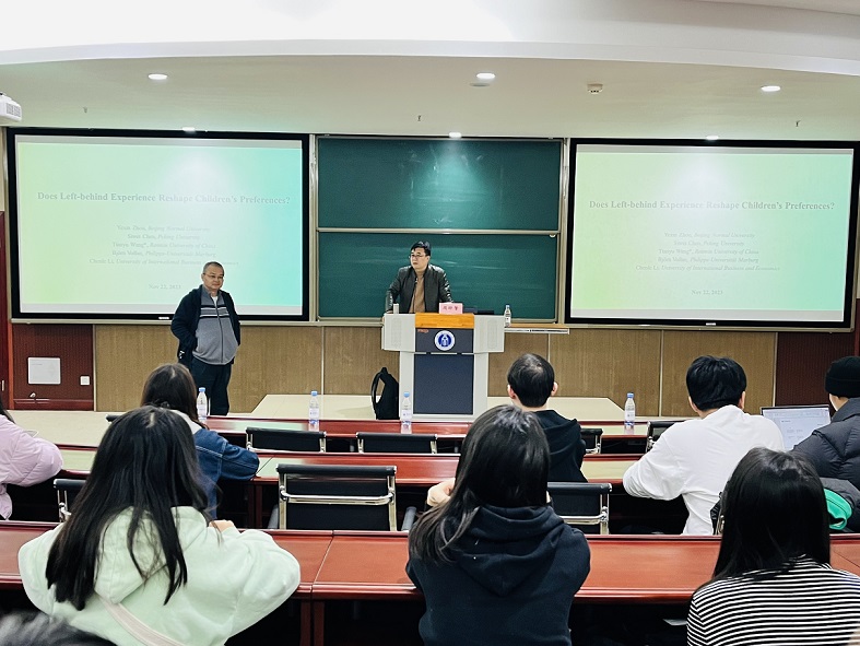 11月24日下午,北京师范大学周晔馨教授应公司邀请,在公司B201开展了题为“留守经历会改变儿童的偏好吗?”的学术讲座。讲座由304永利集团副经理高远东教授主持,公司70余位师生参加了此次讲座。