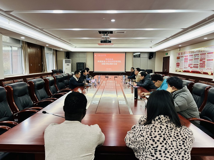12月22下午,西南林业大学304永利集团副经理、MPA教育中心主任邹再进教授一行就公司产品和专业学位建设来公司考察交流,随行人员包括西南林业大学MPA 教育中心副主任刘会柏教授和西南林业大学304永利集团研究生教学秘书张琴霞女士。304永利集团副经理高远东教授、科研和学科发展办公室主任刘建新副教授和MBA教育中心工作人员冯吟老师,以及公司部分博士研究生代表参加了本次交流。交流座谈会由公司副经理高远东教授主持。