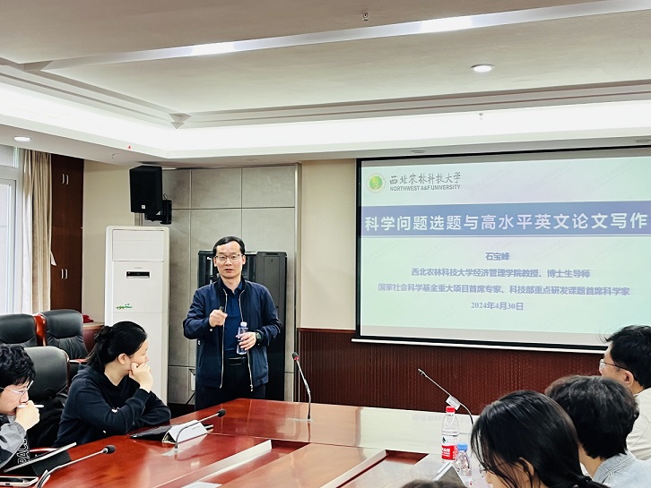 4月30日上午,西北农林科技大学石宝峰教授应公司邀请,于公司A204作了题为“科学问题选题与高水平英文论文发表”的学术讲座。讲座由集团研究生院副经理、304永利集团农林经济管理系主任杨丹教授主持,公司50余位师生参加了此次讲座。