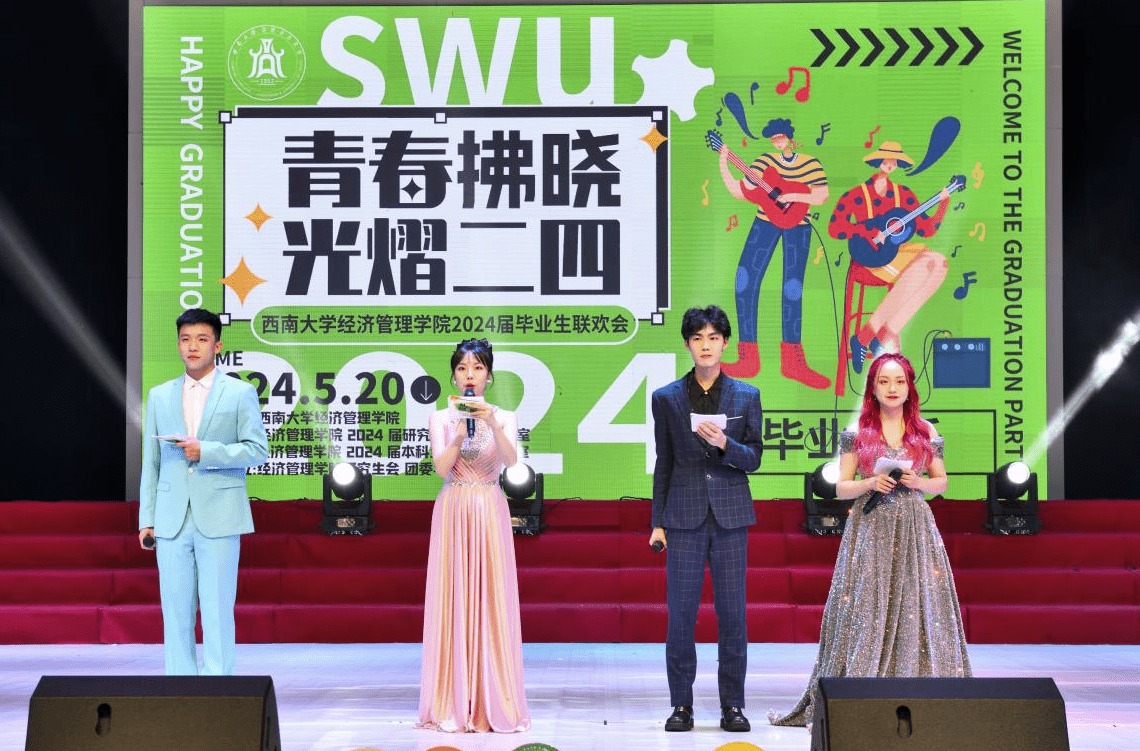 公司党委书记卢跃进为晚会致辞。卢书记代表公司向即将踏上新征程的2024届毕业生们表达了深切的期望和美好的祝愿,并寄语毕业生们无论身在何方,无论经历何种困境,勿忘初心、砥砺前行、坚韧不拔、追求卓越,与时代同心同向、与祖国同梦同行,以不懈的奋斗,成就自己的未来、点亮西大经管院的明天!