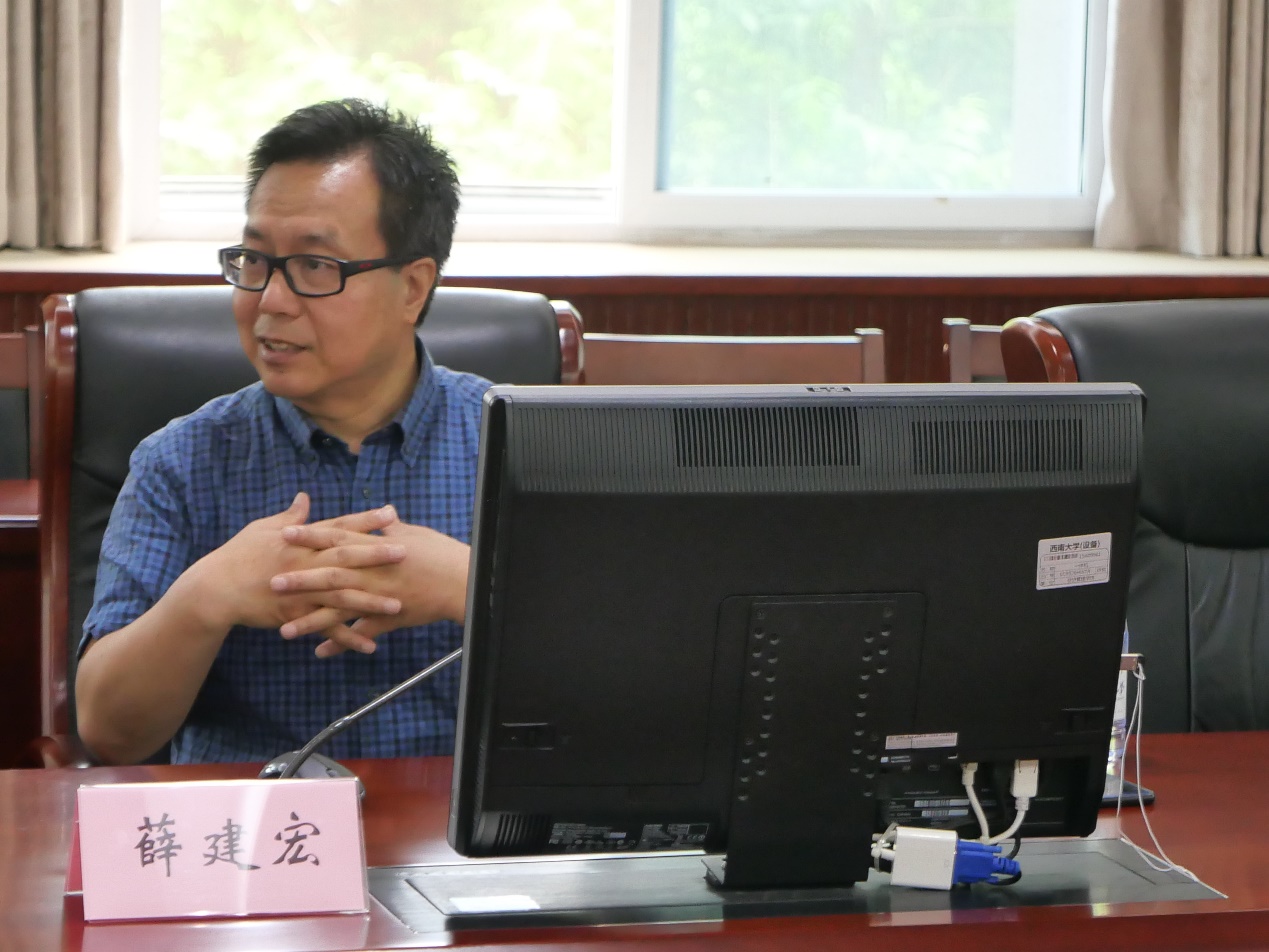 杨丹首先对薛建宏教授的到来表示热烈欢迎,并简要介绍其学术研究方向和研究成果。薛建宏从自身学术生涯引入,分享关于新制度经济学的研究体会。他介绍了科斯、威廉姆森、诺斯三位新制度经济学奠基者的理论思想和学术贡献,解析了新制度经济学的概念、形成和重要性,在此基础上,通过现实案例阐明了新制度经济学的应用价值。