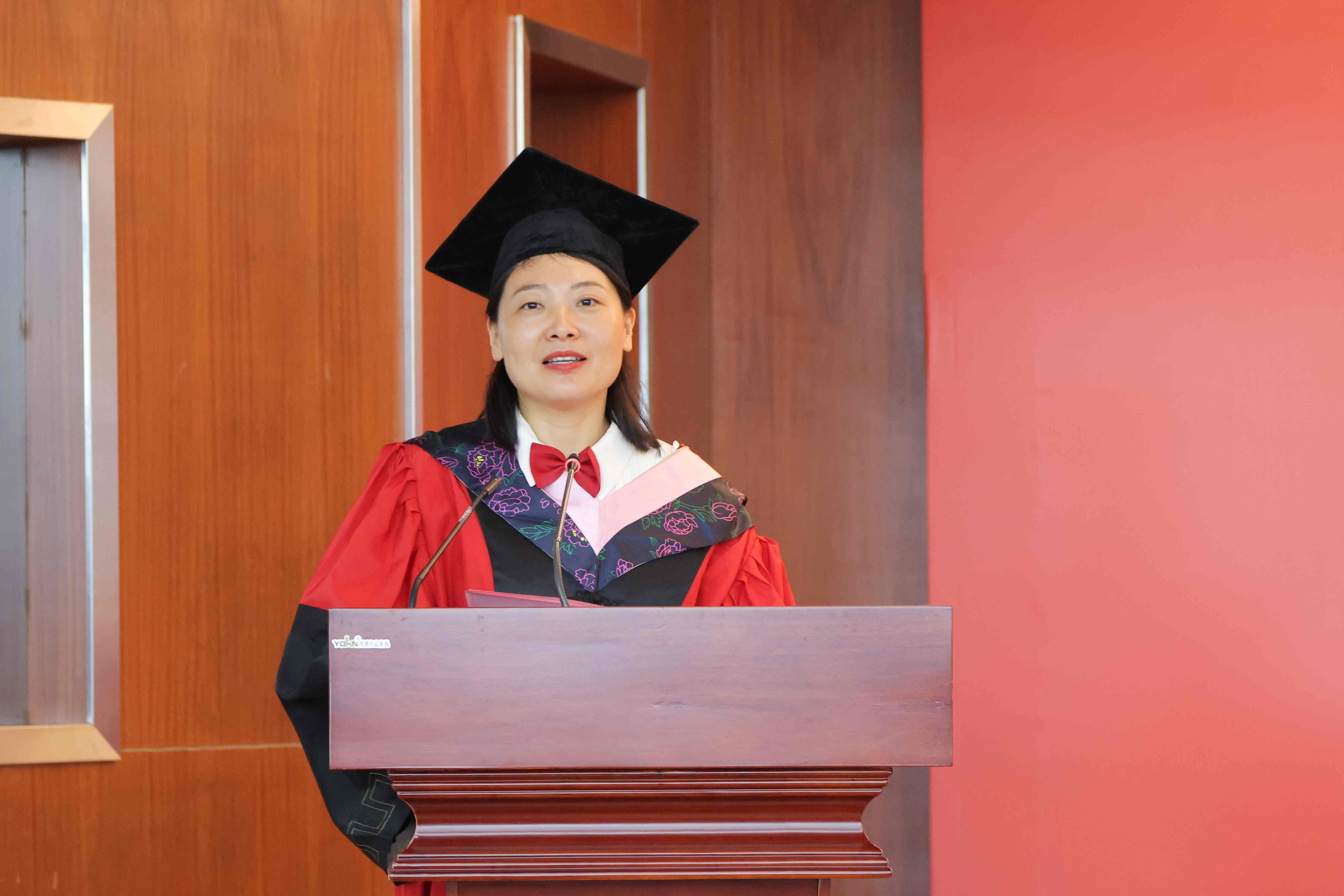 304永利集团副经理杨丹教授发表了满怀深情的讲话。她首先代表公司对全体毕业生致以最热烈的祝贺和最美好的祝愿,对辛勤哺育毕业生成长的父母、悉心教导的老师、关心支持的家人和朋友、表示最衷心的感谢。她回顾了毕业生卢海军,彭小松勇扑山火的英勇行为,毕业生标兵袁铭璐对专业知识的深耕细作,以车轮为笔骑行13541公里的毕业生龚旭晖,大学四年累计阅读了289本课外书籍的毕业生何鹏,杨教授肯定了毕业生们用实际行动诠释自己的责任与担当,并嘱托全体毕业生要树立高远之志、锤炼德行之魂、怀抱进取之心,让青春在奋斗中绽放绚丽之花、在奉献中焕发闪亮光彩、在学习中永葆生命活力,为建设社会主义现代化国家贡献自己的青春力量。她祝愿全体毕业生以梦为马,不负青春、不负韶华、不负时代,在创新实践中砥砺前行!在奉献社会中成就自我!在伟大时代中绽放芳华!