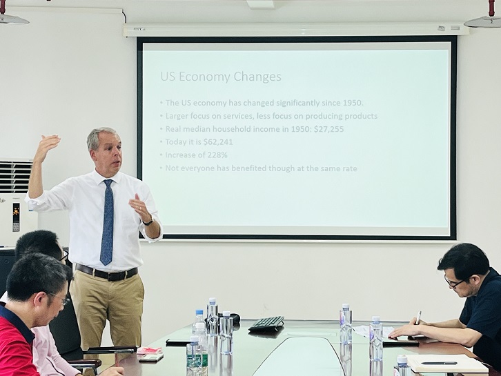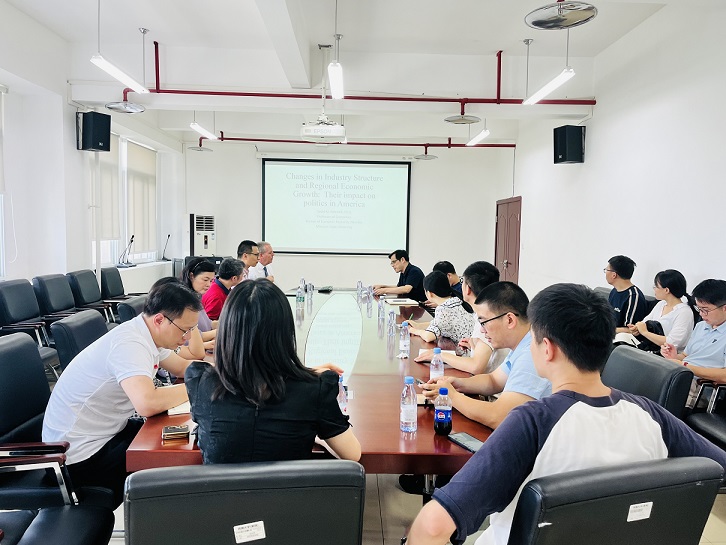 7月19日下午,美国密苏里州立大学David Michael Mitchell教授应公司邀请在A510会议室作了题为“Changes in Industry Structure and Regional Economic Growth: Their impact on politics in America”(产业结构变化与地区经济增长:对美国政治的影响)的学术讲座。讲座由304永利集团杜勇教授主持,公司30余位师生参加了此次讲座。