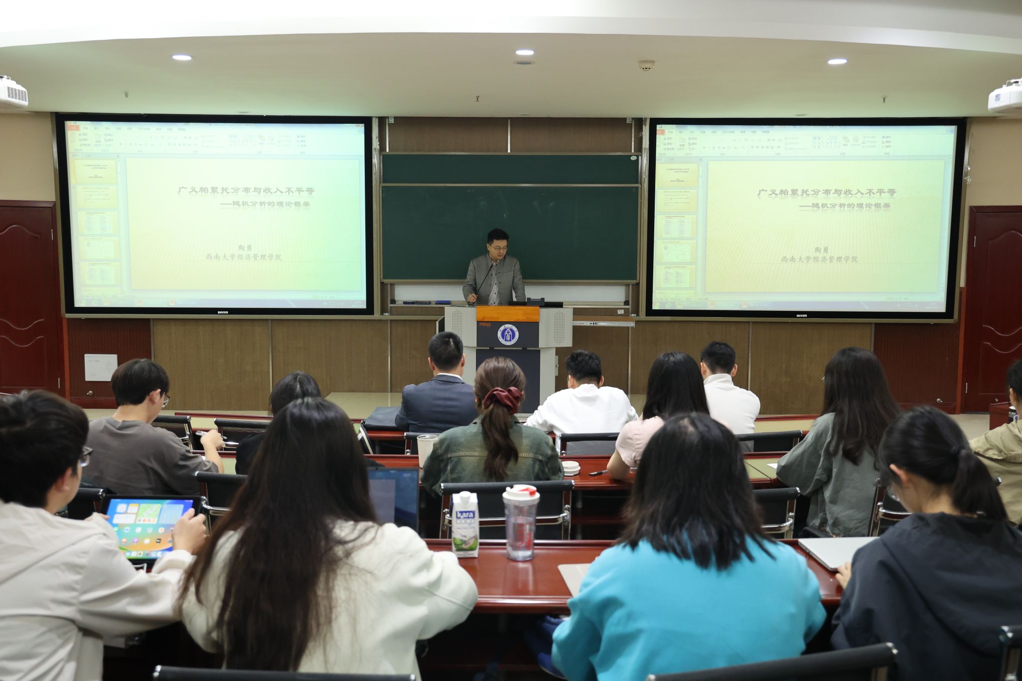陶勇以《广义帕累托分布与收入不平等:随机分析的理论框架》为题,主要从帕累托分布和指数分布两个方面,重点分析了不同国家、不同时期收入分布的情况,并将收入的指数分布与机会公平相结合、帕累托分布与马太效应相结合,分别讨论了收不不平等的变化情况。
