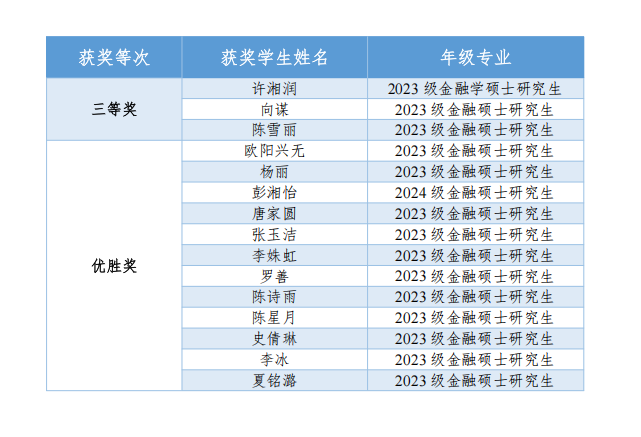 11月26日,由中国金融期货交易所和中国期货业协会联合主办的第十届“中金所杯”全国老员工金融知识大赛结果揭晓,304永利集团共有15名硕士研究生获奖,其中许湘润、向谋和陈雪丽获得大赛三等奖,欧阳兴无等12人获得大赛优胜奖。