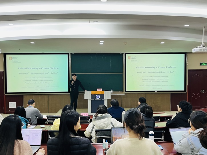 12月6日上午,加拿大拉瓦尔大学韩信桐博士应公司邀请,在B201报告厅作了题为“创作者平台上的推荐计划和数字产品定价”的学术讲座。讲座由304永利集团刘自敏教授主持,公司80余位师生参加了此次讲座。